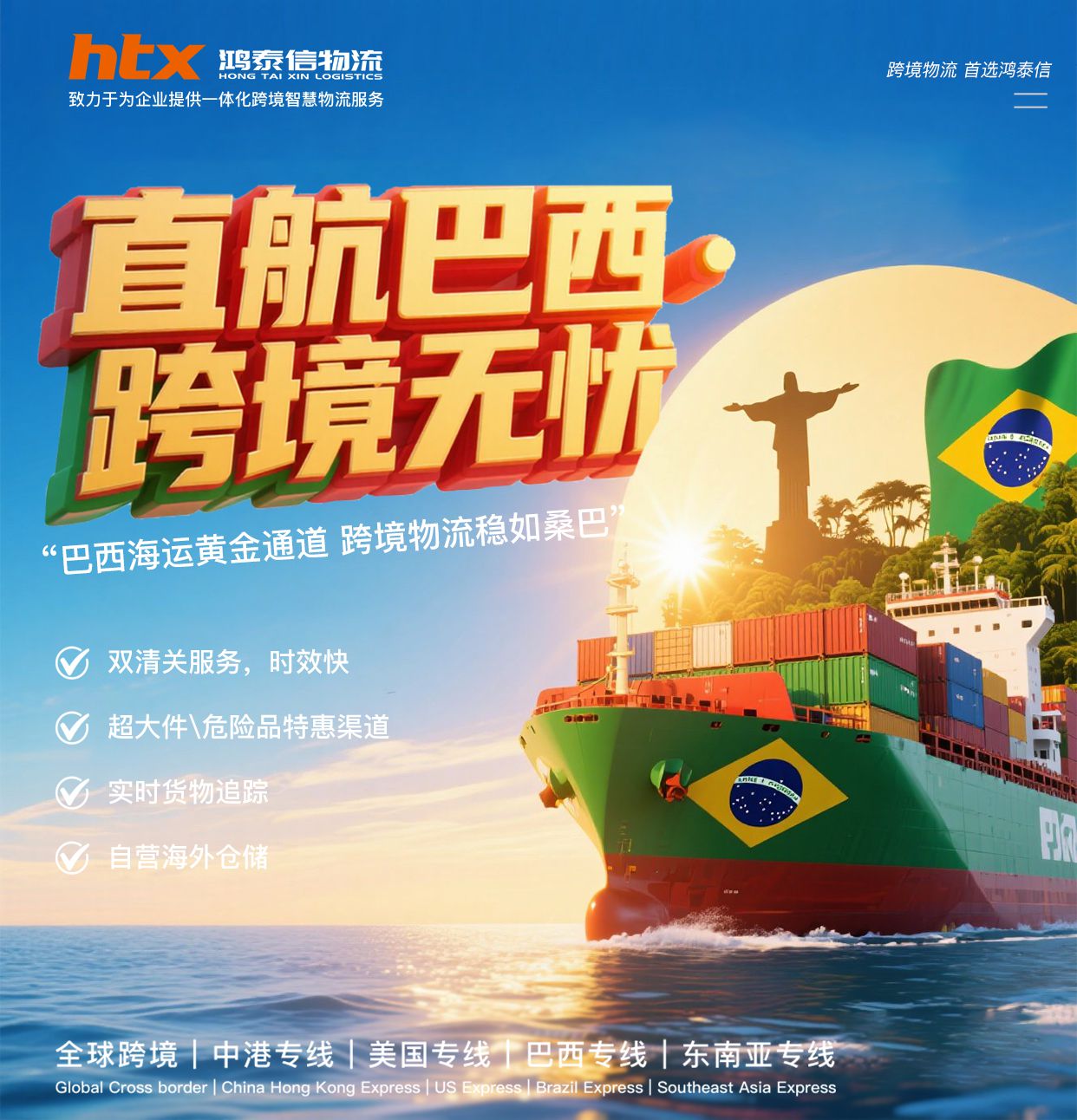 鴻泰信為了助力中國跨境商家,發(fā)展電商大市場(chǎng),特別推出了海運(yùn)海...